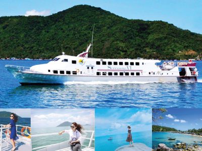 SÁNG 06H30: Quý khách làm thủ tục lên tàu cao tốc Express_5 sao. Khởi hành đi Hòn-Sơn. Sau 1 giờ 20 phút vượt biển, đoàn cập cảng Hòn Sơn. Quý khách nhận xe máy (2 khách / xe) bắt đầu hành trình Khám phá xã đảo Lại Sơn và tắm biển tại một trong các Bãi Nhà, Bãi Thiên Tuế, Bãi Đá Chài, Bãi Xếp – Cây dừa nằm, Bãi Bàng – là các bãi biển có cát mịn trải dài, với hàng dừa nghiêng đung đưa theo gió đẹp nhất đảo!