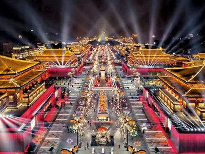 Sau đó đoàn có thể tự phí xem biểu diễn quy mô lớn “Thiên Cổ Tình Tây An”. Lấy câu chuyện về một cô gái Trung Quốc trở về Trung Quốc tìm cội nguồn làm tuyến chính, bắt tay vào hành trình tìm lại ký ức dân tộc. Nó được chia thành nhiều bản diễn như “Văn Minh Chi Quang”, “Ba Hà Chi Châu”, “Đại Vũ Trị Thủy”, “Đại Đường Hưng Thịnh”, “Con Đường Tơ Lụa” và các cảnh khác. “Thiên Cổ Tình Tây An” không chỉ đơn giản thể hiện lịch sử mà còn sử dụng kỹ thuật biểu đạt nghệ thuật độc đáo để nắm bắt những mảnh ghép của văn hóa Tây An và giới thiệu một tác phẩm thú vị đến khán giả. Đây là bài thơ lãng mạn của Ba Liu Yiyi, đây là vinh quang của Trường An thời nhà Đường, đây là huyền thoại về Con đường tơ lụa ngàn dặm cát, đây là âm thanh vang dội và mạnh mẽ của con đường trẻ hóa …